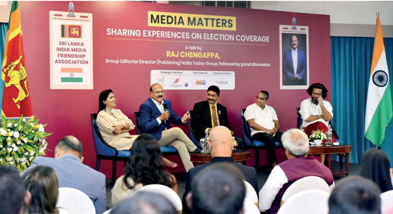 The inaugural event of the Sri Lanka-India Media Friendship Association (SLIMFA), titled ‘Media Matters: Sharing Experiences on Election Coverage,’ was organized with the participation of Raj Chengappa, Group Editorial Director of the India Today Group, as the keynote speaker. A panel discussion on election-related matters was also held during the event.